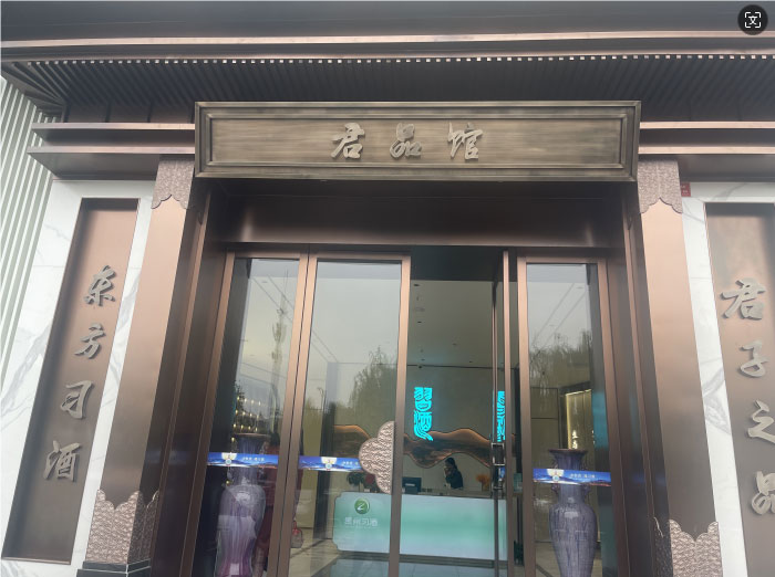 大门整体使用不锈钢材质,八个不锈钢字耐磨耐晒耐腐蚀,地拉弹簧门上放弃使用传统拉手,改用定制云纹拉手,使得大门的质感更上一层楼。