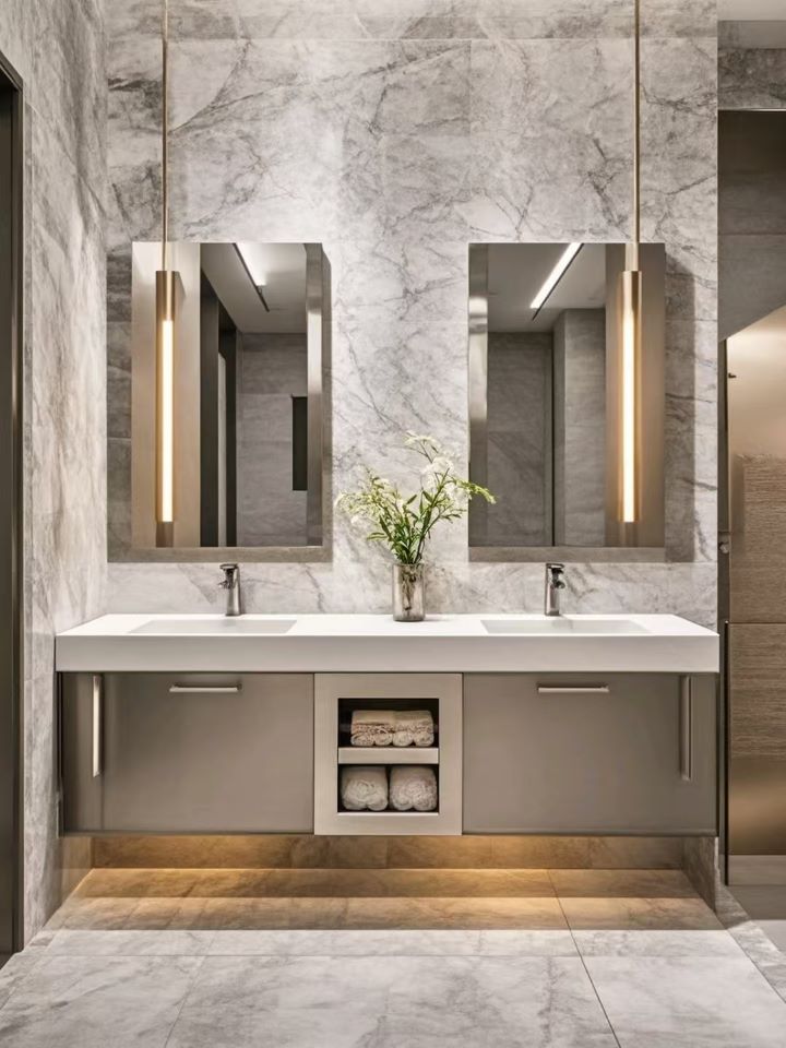 其设计风格简约大气,线条流畅,既展现出现代时尚的美感,又能与各种装修风格完美融合。无论是简约现代风、北欧风还是豪华欧式风,明铂尔浴室橱柜都能成为浴室中的点睛之笔。