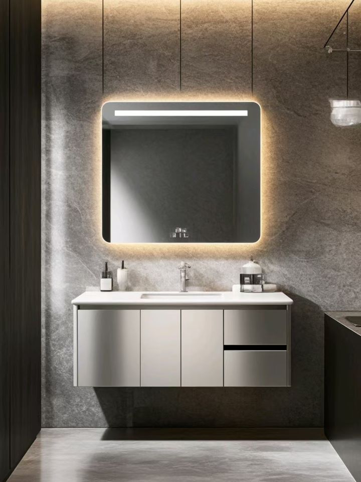 在功能方面,明铂尔更是考虑周全。丰富的收纳空间,让你的洗漱用品、化妆品等都能找到合适的归处,使浴室告别杂乱,变得井井有条。抽屉与柜门的开合顺畅,五金配件质量上乘,确保使用的便捷性与持久性。